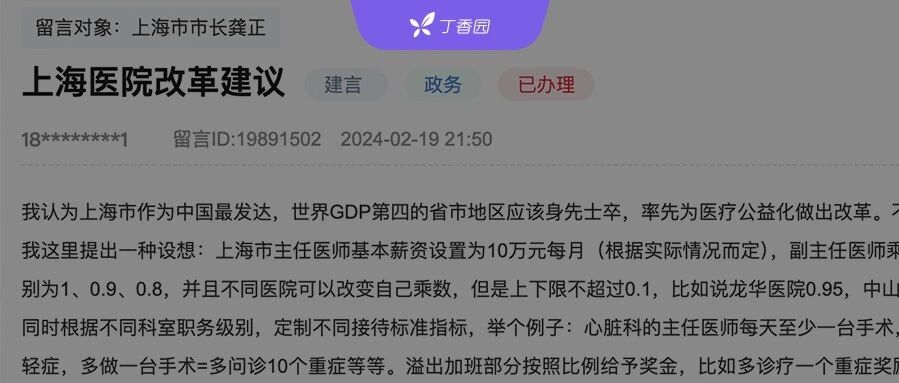 | 主任 10 万,副高 8 万,主治 6 万:上海卫健委回复薪资改革 | 查看 | 2024-04-19 15:33:37 | 93464 | 20 | 2024-04-19 16:37:24 | 丁香园 | |