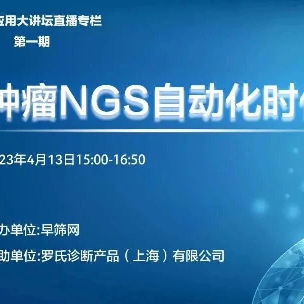 | 4月13日15:00|顶尖肿瘤医院专家邀您迈进肿瘤NGS自动化时代,云端共策癌症精准诊疗新方案! | 查看 | 2023-04-12 17:18:10 | 83 | 0 | 2023-04-12 18:20:53 | 测序中国 | |